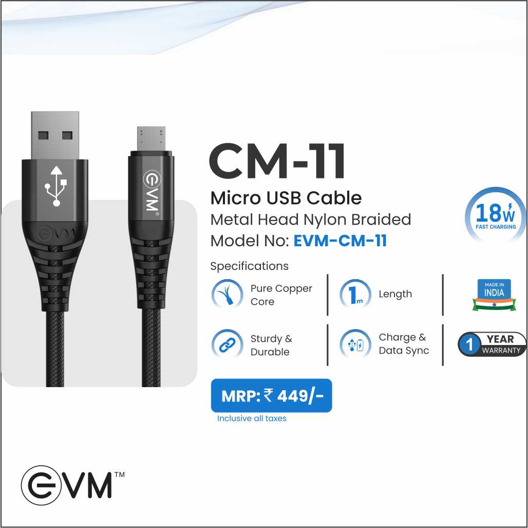 CM-11 Micro USB Cable Metal Head Nylon Braided