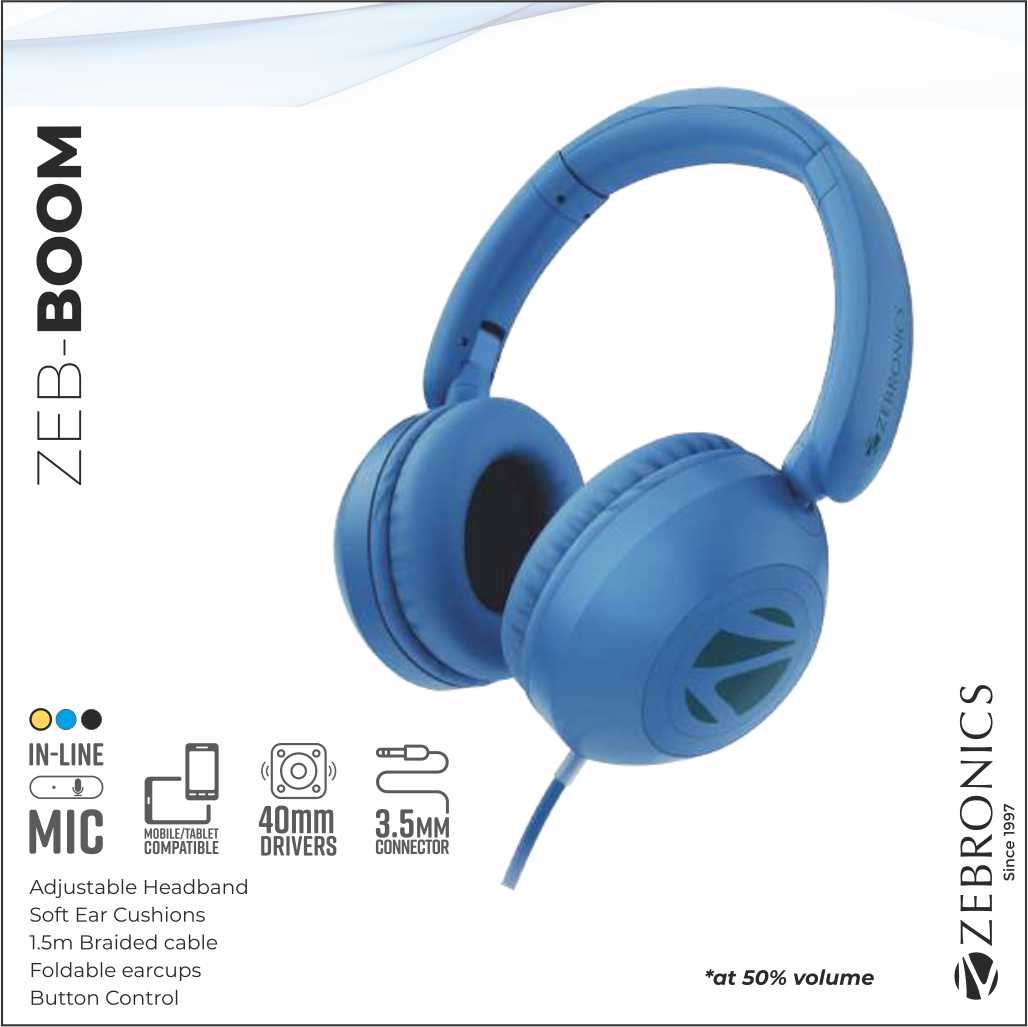 H-ZEBRONICS HEADPHONE WITH MIC (BOOM BLUE)