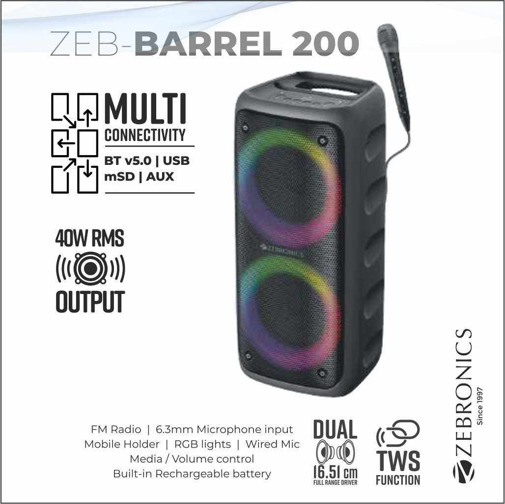 SPK-ZEBRONICS PORTABLE BLUETOOTH SPEAKER (BARREL 200)