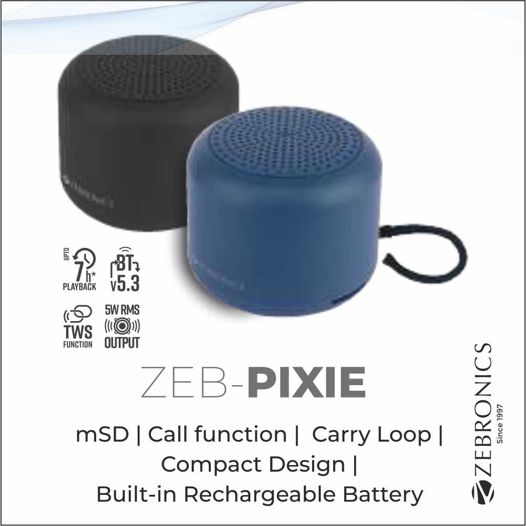 SPK-ZEBRONICS PORTABLE BLUETOOTH SPEAKER (PIXIE BLACK)