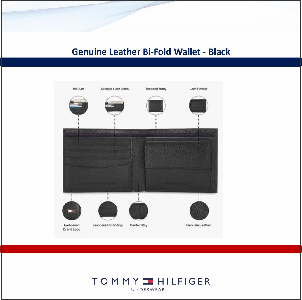 Tommy Hilfiger Genuine Leather Bi-Fold Wallet – Black